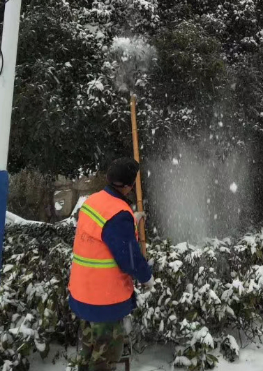 藍(lán)綠公司下轄我市鏡湖公園、九蓮塘公園等多個(gè)園林景點(diǎn),同時(shí)負(fù)責(zé)濱江公園、花津南路、長江南路、205國道、弋江區(qū)南瑞小區(qū)、高校園區(qū)等多處綠化養(yǎng)護(hù)。為保障市民安全出行,藍(lán)綠公司成立七支應(yīng)急搶險(xiǎn)小分隊(duì),自23日起,除加強(qiáng)常規(guī)防范外,提前對(duì)各處行道樹和景觀樹進(jìn)行針對(duì)性修剪和防寒工作,力求降雪不大量堆積樹頭、壓斷樹枝,給樹木帶來毀滅性打擊,造成不可逆損失。在開始降雪后,派專人專車進(jìn)行不間斷的路面巡邏,24小時(shí)進(jìn)行打雪作業(yè),盡可能減少降雪對(duì)綠化景觀的損害;及時(shí)清理路面散落的枯枝斷枝,整理倒伏樹木;組織人員做好責(zé)任地段清雪除冰工作,保證責(zé)任道路暢通和公園景區(qū)行人正常通行。