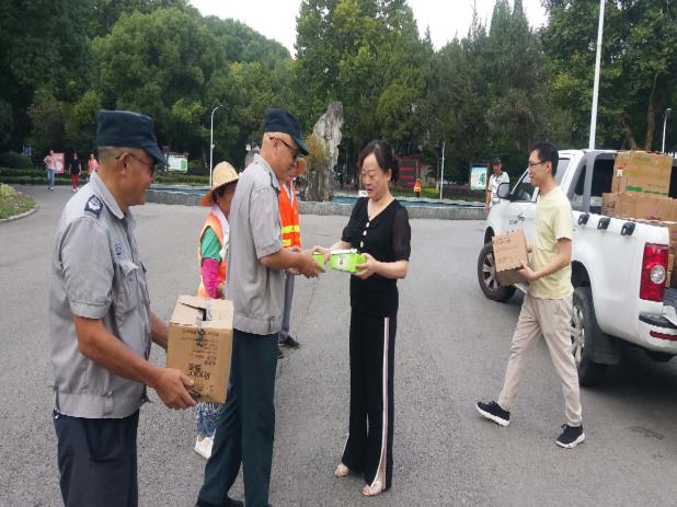 驕陽似火,持續(xù)的高溫天氣給蕪湖城市園林集團(tuán)有限公司的綠化養(yǎng)護(hù)、公園管理等安全生產(chǎn)工作帶來新的考驗(yàn)。為確保各子公司、分公司一線廣大勞務(wù)人員平安度暑,促進(jìn)各養(yǎng)護(hù)管理標(biāo)段繼續(xù)保持良好的安全生產(chǎn)態(tài)勢(shì),8月25日和26日,園林集團(tuán)副總曹慧同志及行政部一行代表集團(tuán)工會(huì)到各子公司、分公司,為堅(jiān)守崗位的一線工人們送去藥品、沐浴洗護(hù)等防暑降溫物資,也將集團(tuán)公司的關(guān)心和愛護(hù)帶給他們。